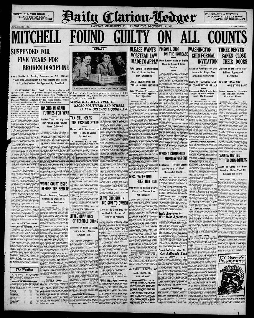 100 Years since Col. Billy Mitchell found guilty for telling truth