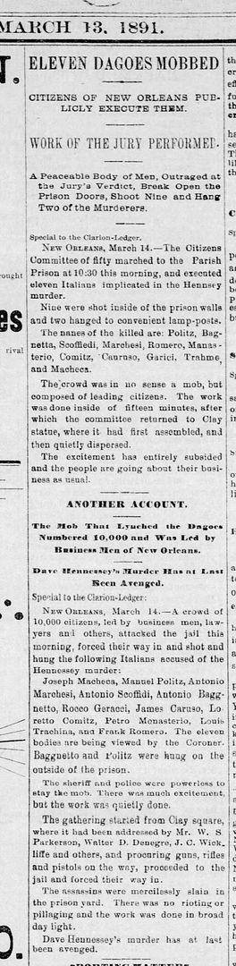 re: 1891 New Orleans lynchings - "largest single mass lynching in American history"