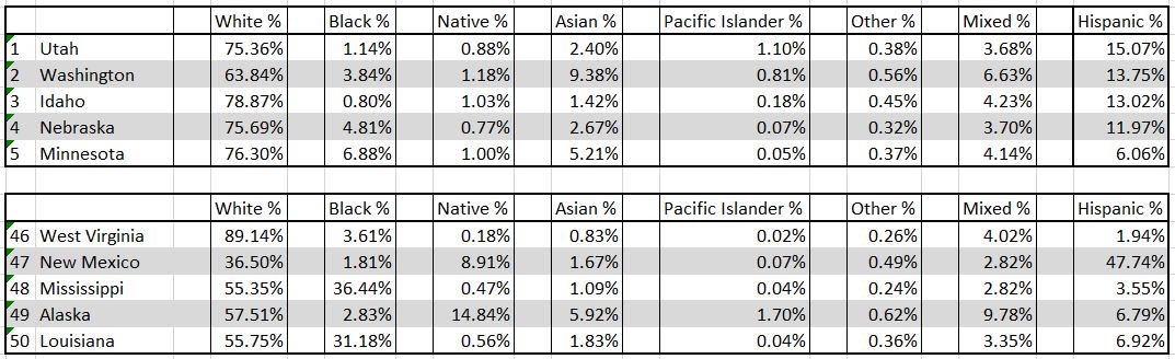 And I would 100% want to live in Louisiana over Utah, Washington, Idaho, Nebraska and Minnesota any day all day.