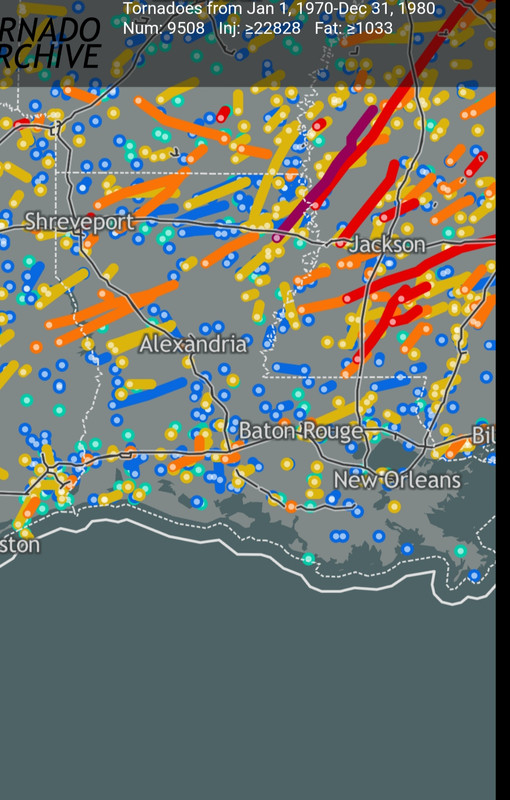 Right, and look at the increase in confirmed short lived, weak tornadoes. The number of blue dots increases dramatically. We are surveying and confirming way more weak tornadoes than we used to. Those tornadoes always occurred. People just never knew about them.