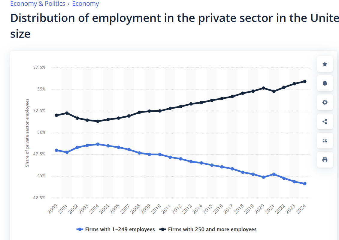 BigCorp is gaining more and more of the workforce by the year and there is no sign of that trend reversing.