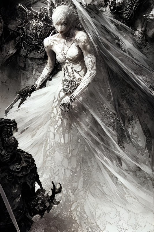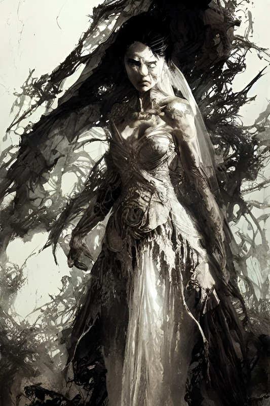 Interested in what you might get with one theme I've used a few times, though I only once ever shared one of the images and got an immediate response of "That's disturbing", which was my intent - a beautiful girl, made surreal and ghostly, then blood-splattered.