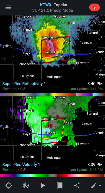 Apparently some damage reported in McPherson, Ks (town south of Salina)