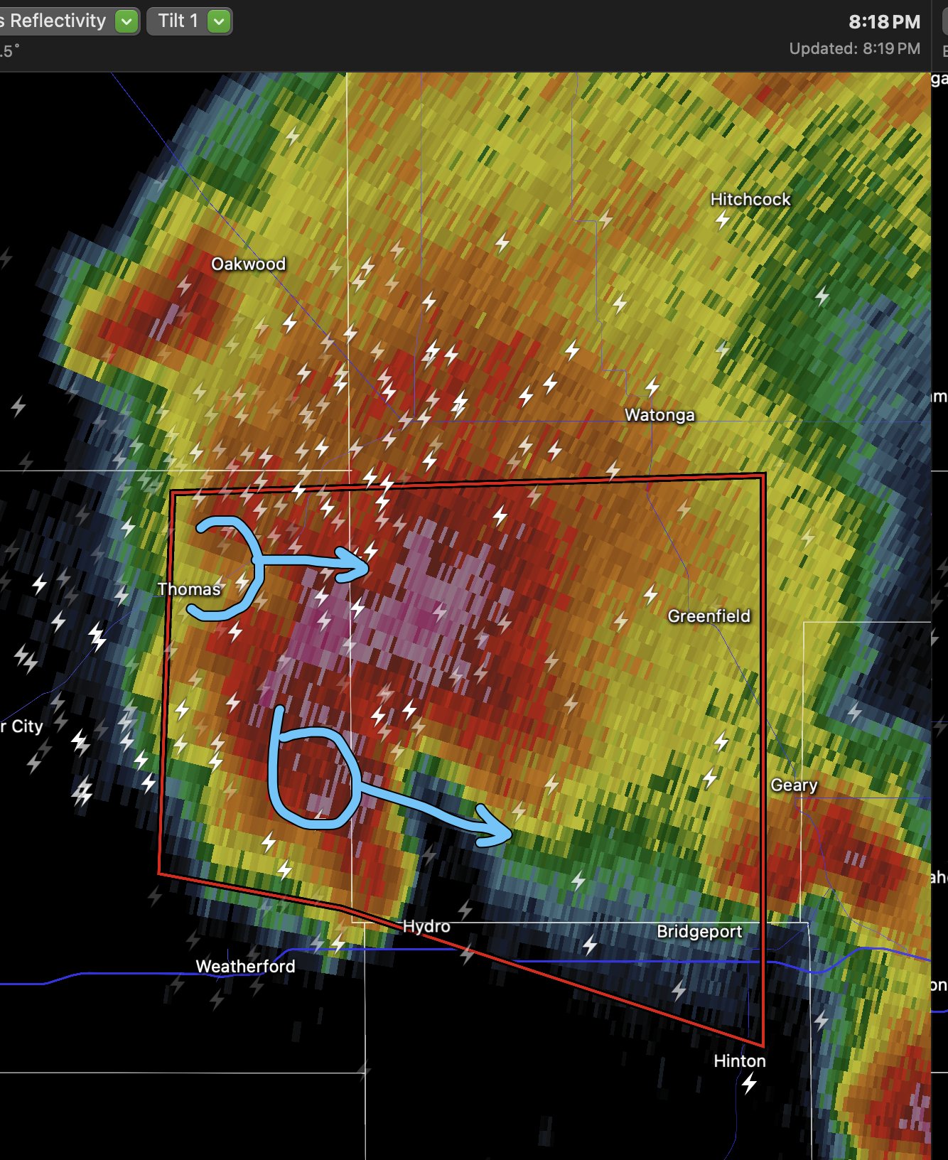 The Custer City tornado has been confirmed to touched back down and is intensifying.