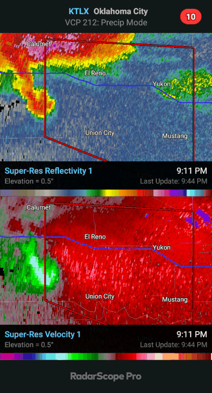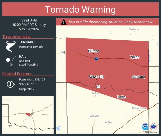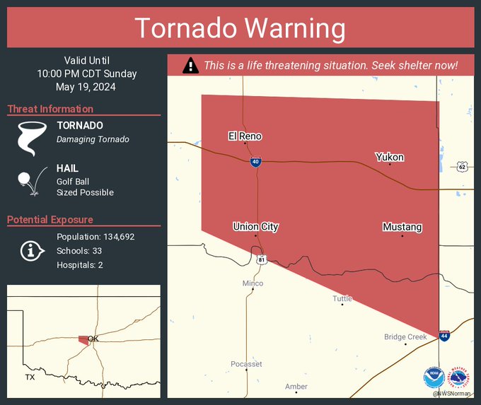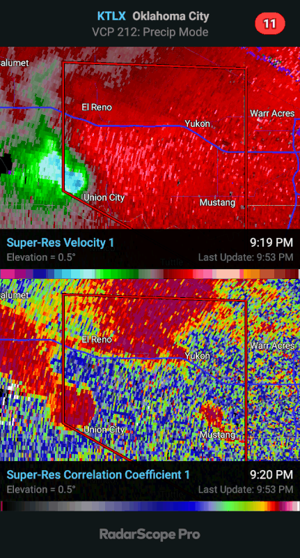Warning for OKC near Mustang - only radar indicated at the moment