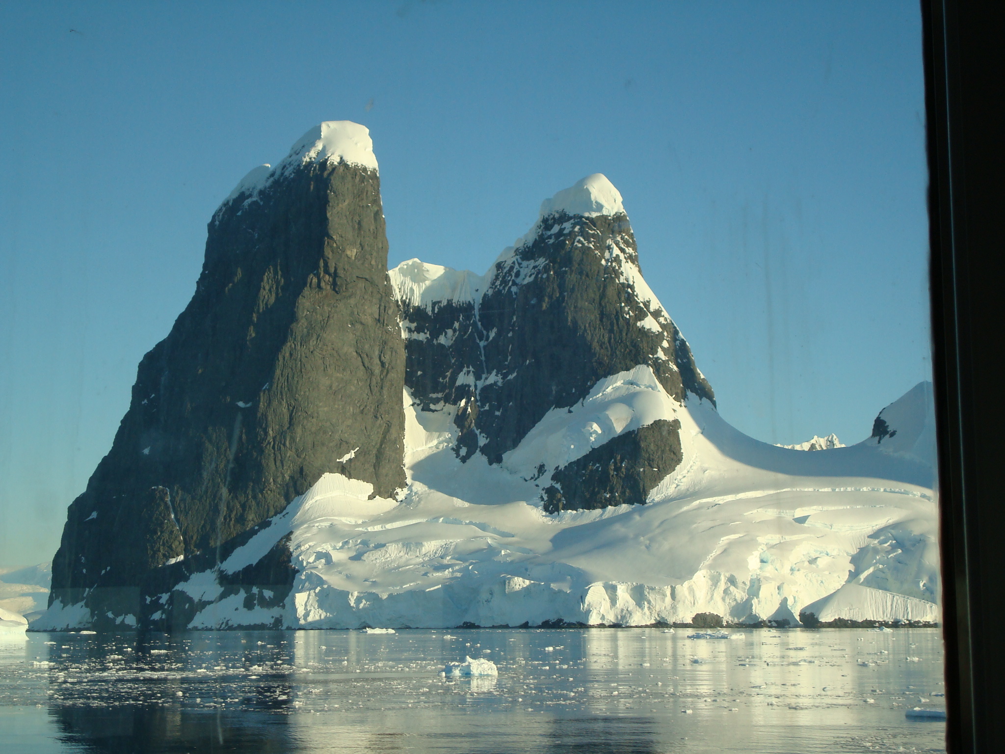 The photo is of a rock formation on the Antarctica Peninsula at the edge of the water called "Una's Tits."