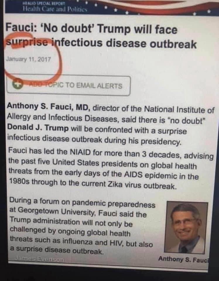 It's been said for 15 months, he was under the direction of Pence and ultimately Trump. Just the same as Birx, et al. Intelligence was in black and white to all. If Fauci is smart enough to pull off some big hoax, Lord help how dumb the rest of that Administration was