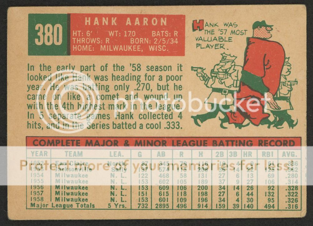 1958 Topps Willie Mays 1961 Topps Roger Maris 1959 Topps Hank Aaron