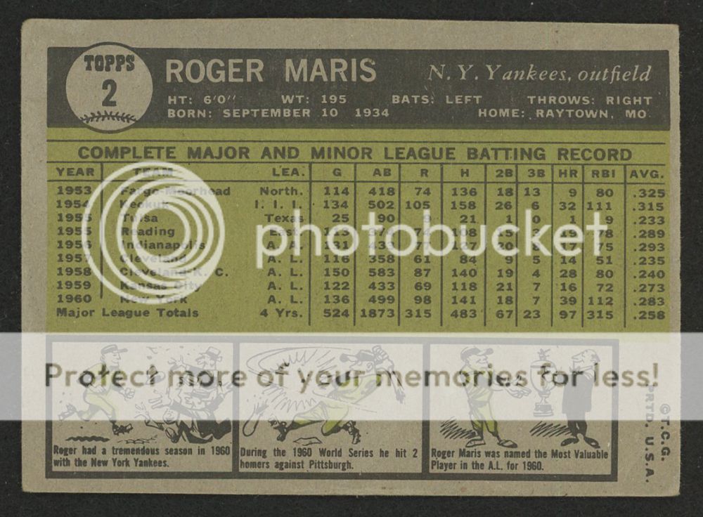No, Maris was the MVP in 1960, therefore his 1961 Topps card is either the #1 or #2 card in the set (the NL MVP would be the other) so it was an early release card which makes it rarer.