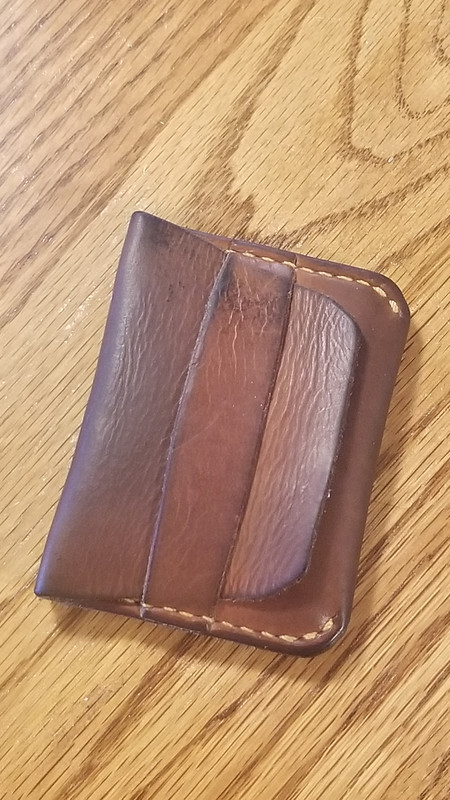 I made it, and it is the only one I carry now. Holds five or six cards and some cash. Front, back pocket, shirt pocket, any pocket carry.