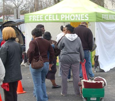 Six or eight fatties holding signs on sidewalk in front of Stab's, sweating!
