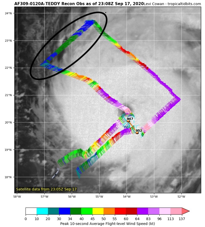 30+ buoys were dropped within the black circle out in front of Teddy. Should be interesting to see what data they bring in tomorrow as the storm passes overhead.