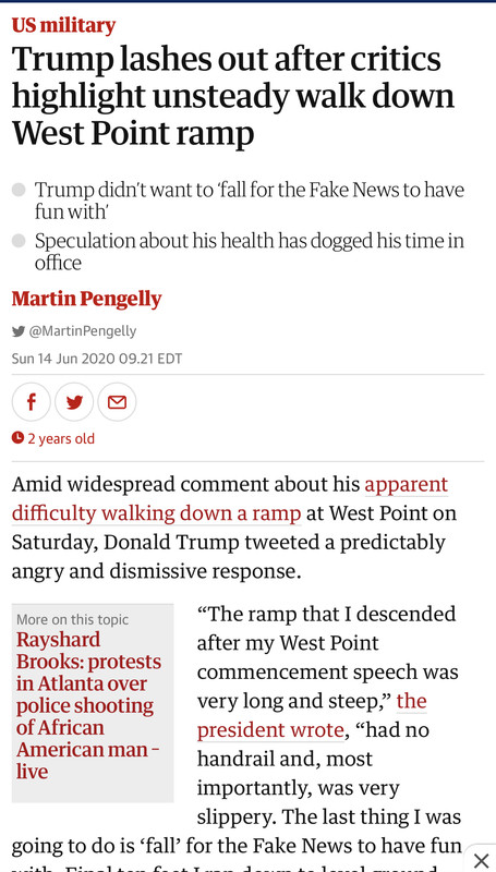 I remember the media going crazy after Trump descended down a wet ramp because it was slippery…calling into question is physical fitness for the job