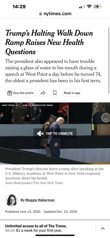 They went crazy and said he had neurological problems when he held a water battle awkwardly after shaking hands with hundreds of cadets. Biden does this stuff twice a week and they say nothing.