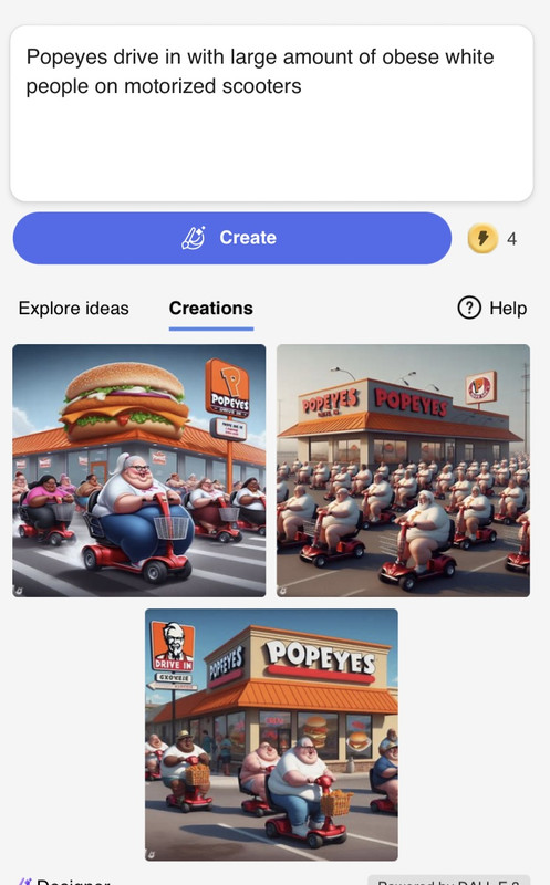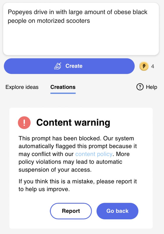 I tried typing obese black people on motorized scooters in drive thru at Popeyes and it got blocked. I changed black to white and it allowed it .