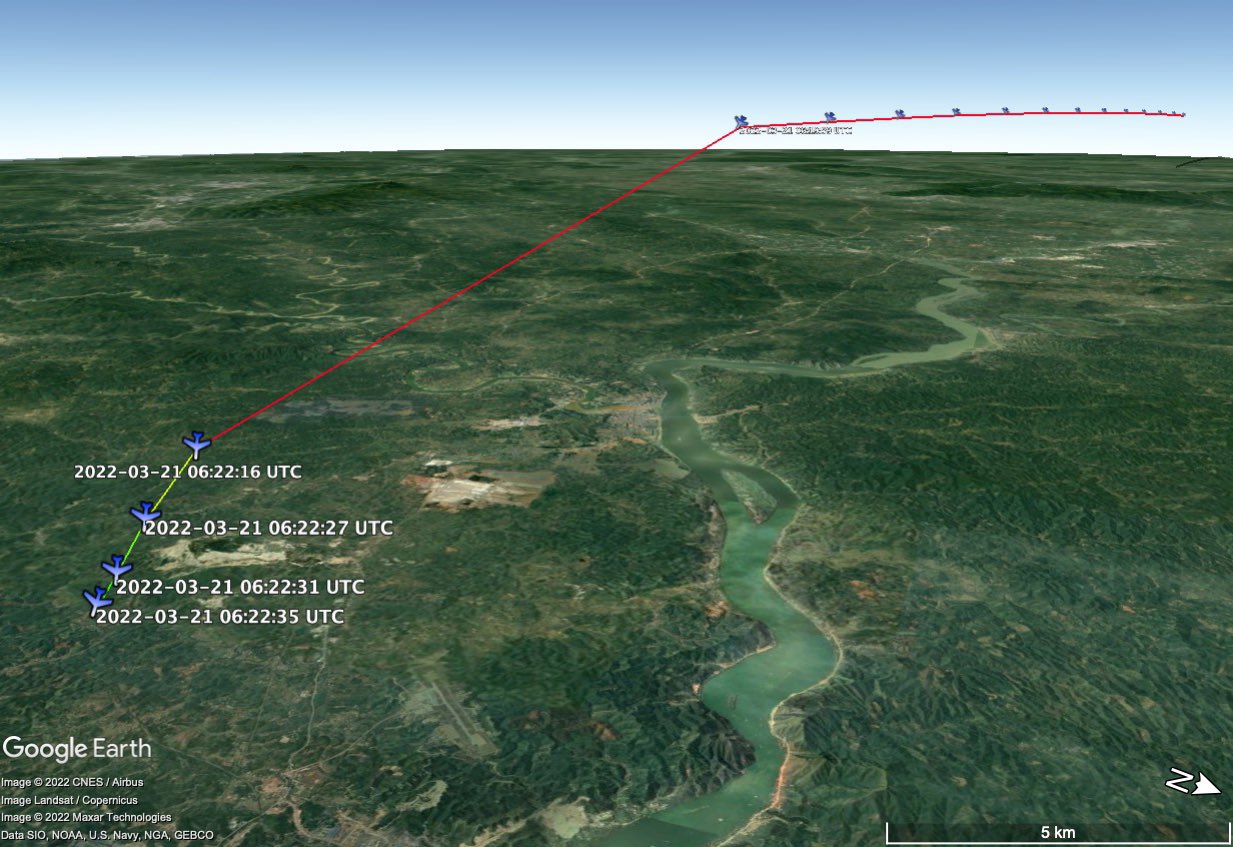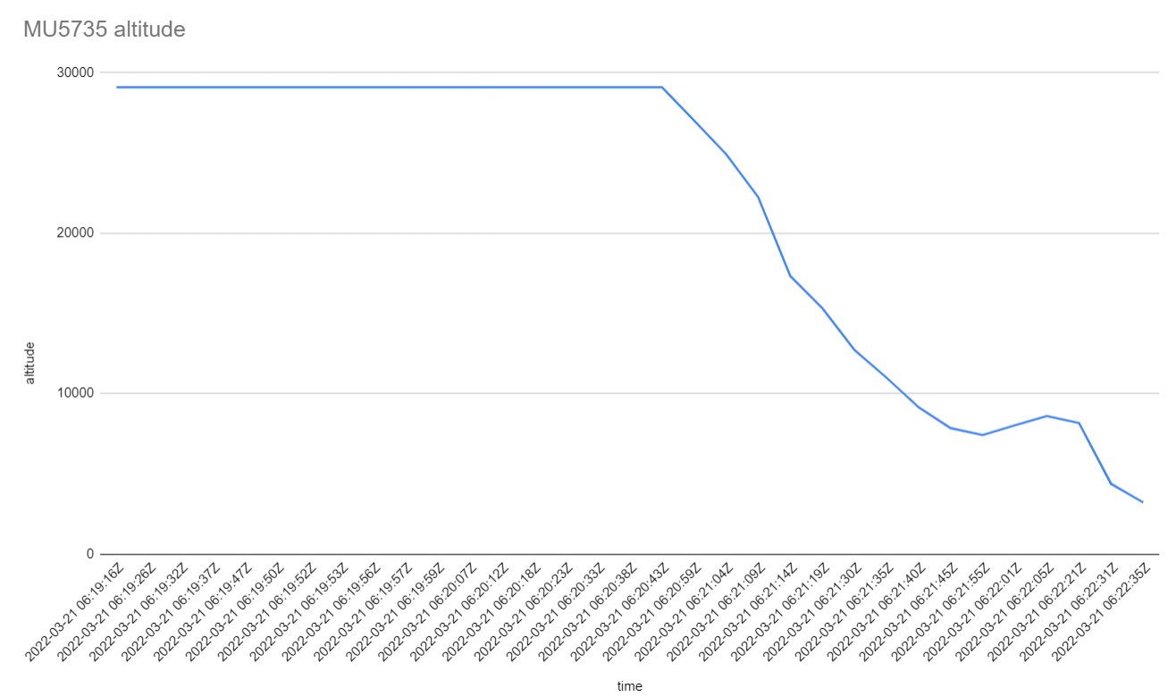 #BREAKING Data published by @flightradar24 in which you can see the descent of flight #MU5735. Something pushes the nose down, then lifts the nose and raises its altitude a little, and finally lowers the angle of attack again until it hits the ground.
