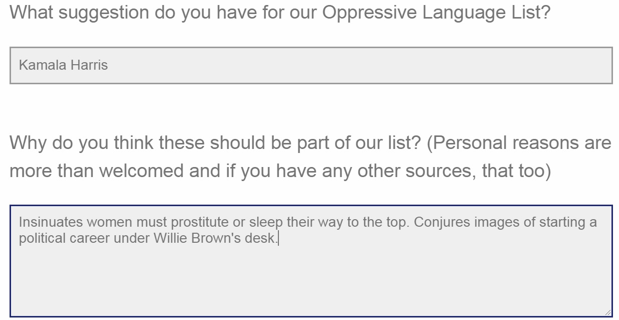 AND they leave room for it to grow as you can submit your own form for suggestions of language you think is oppressive.
