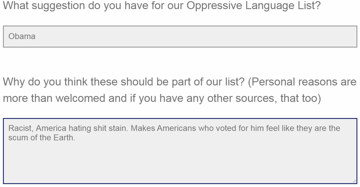 AND they leave room for it to grow as you can submit your own form for suggestions of language you think is oppressive.