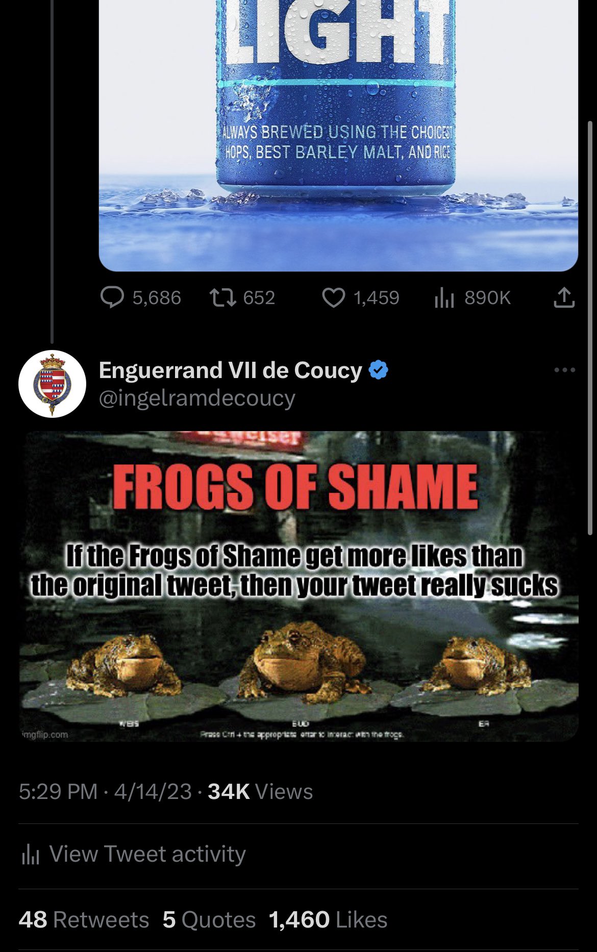 If you click this on Twitter there are Tweets that Bud Light hid from the thread