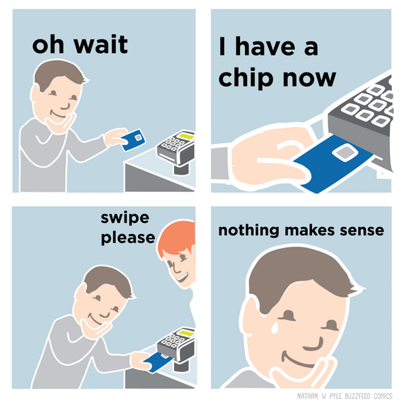 Y'all realize why the chip cards are so much better than swipe cards and the implications on merchants who aren't yet setup for chip cards...right?