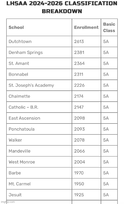 I believe they lose alot of good athletes to Ascension public schools. I would think Ascension Catholic would be massive if it were on the Eastbank of Ascension, where there is a massive Catholic population.