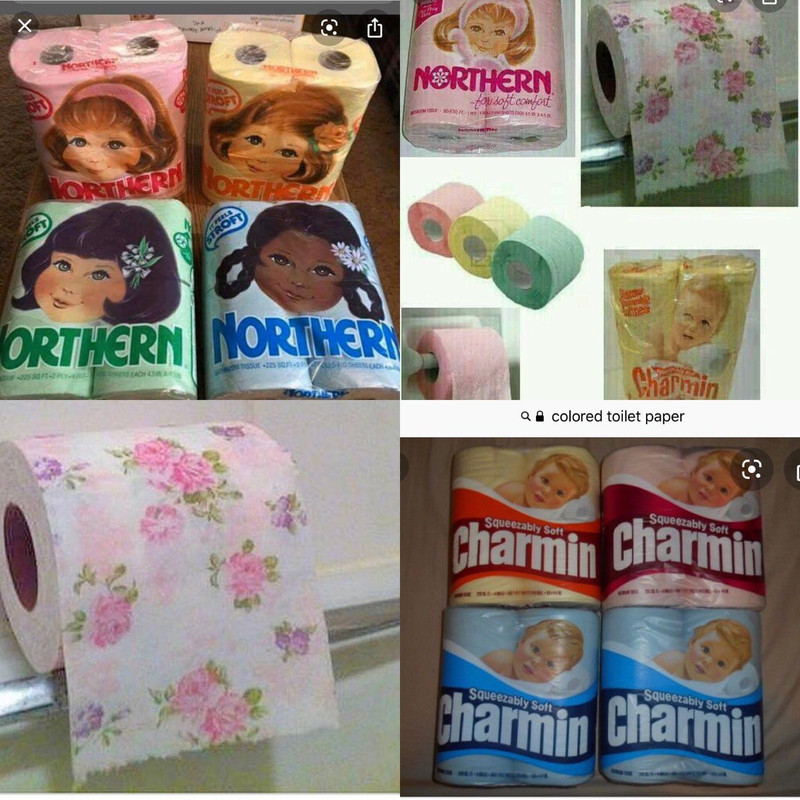 Take off from the 3 liter bottle thread. How many of you ole baws remember yellow, pink, blue and floral toilet paper? Seems to have disappeared around the late 80s. I think there was a problem with the dyes causing allergic reactions in some people.
