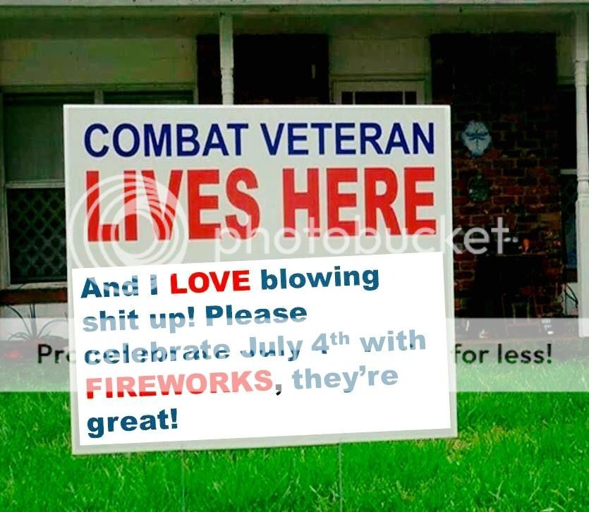 Pussies, probably spent their whole deployment on Camp Victory or KAF there is one of these signs in our neighborhood I'm gonna go buy some of those bigass mortar fireworks fire off in his front yard for being a bitch and bringing discredit upon the military.