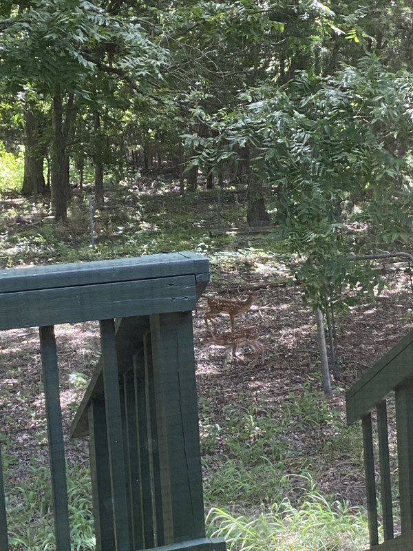 Had two does and a fawn in my suburban Birmingham back yard this morning. My stupid dog ran them off.