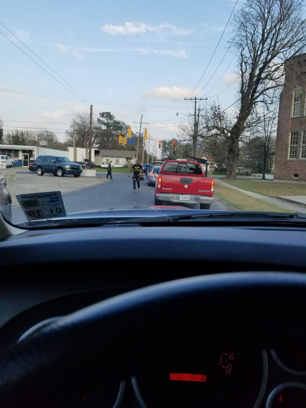 On I-12 between Denham Springs and Hammond - woman cruising with a novel open on the steering wheel. I wish I knew what she was reading because it had to be an incredible book.