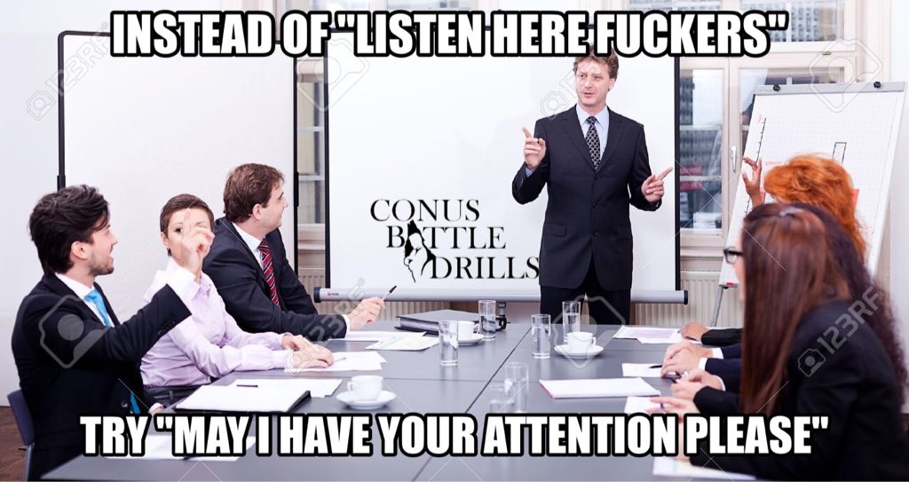 I speak like that to civilians. They find it refreshing when I threaten to count punt them across the office for not throwing away their Kuerig pod when they were done making their espresso.