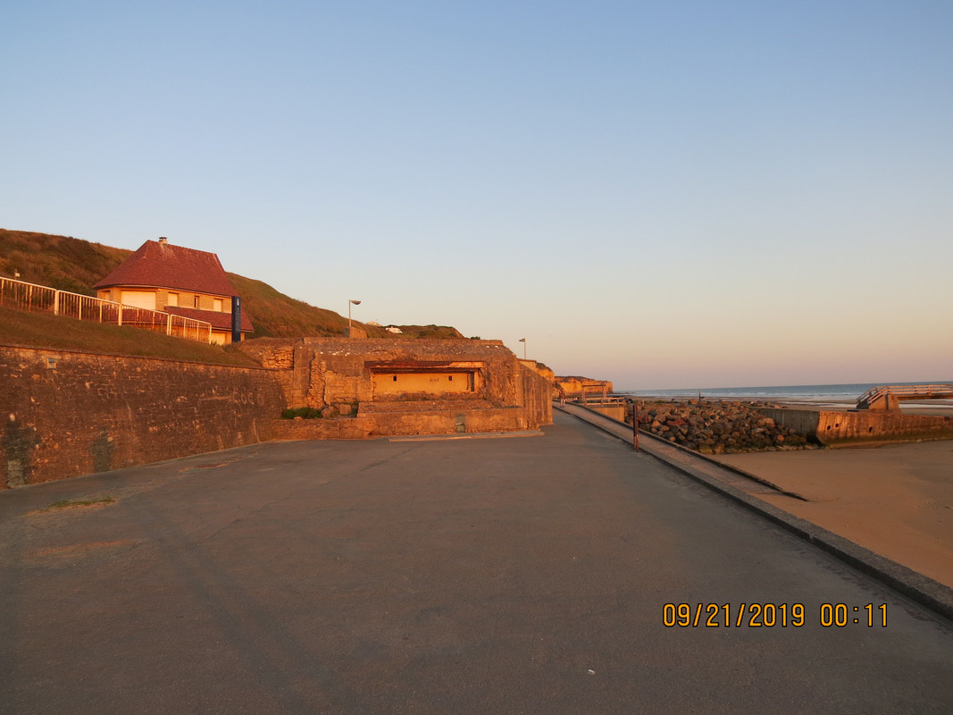 The BnB we stayed at was right on Omaha Beach. I mean, right on. The front door was literally across the street from the seawall and the Beach. Looking at the pic, you can see two similar small buildings. Our BnB was the one on the middle right (has a small, paved parking area in front of it). This pic was taken about halfway up the bluff immediately behind the BnB looking back at Omaha. Referring to D-Day maps, it looks like we are at the "Easy Green" sector of the beach where the 29th Division got chewed up.