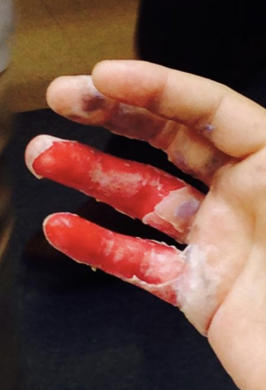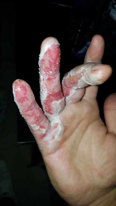 I have pictures of the “sausage fingers” and blood red hands right after they did it but can’t find them right now.