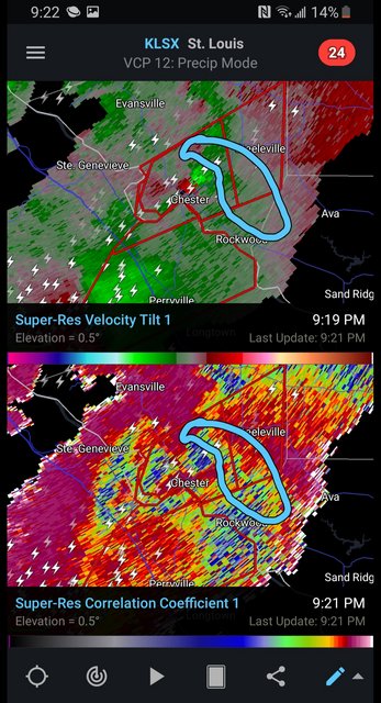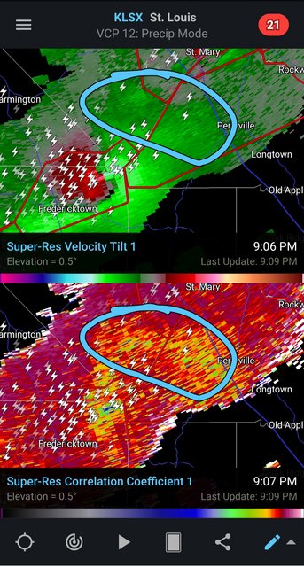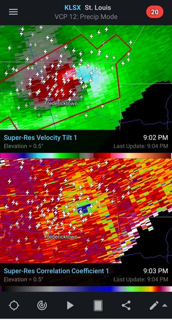The TDS on the storm that went through Fredericktown is not as deep as earlier, but it is roughly 5 miles wide.