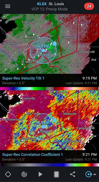 The TDS on the storm that went through Fredericktown is not as deep as earlier, but it is roughly 5 miles wide.