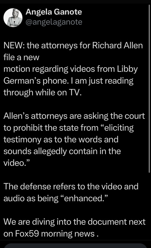Anything come out today about the hair found in Libby or Abby’s hands? Last I read it was not Allen’s hair