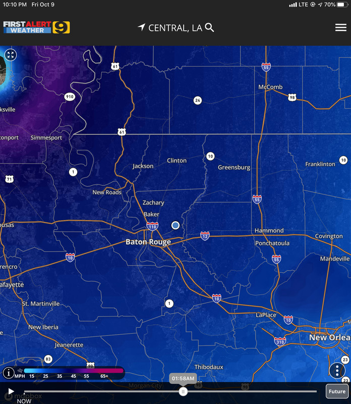 Gusts are as strong as we’ve had all night here north of downtown St. Amant. I’d say roughly 55mph. Still have power but I’m seeing tons of flashes in the direction of downtown.