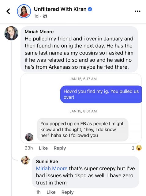 I read on one of the FB pages where a girl said she was pulled over by him recently. The following day he follows and messages her on instagram. He was that type of officer.