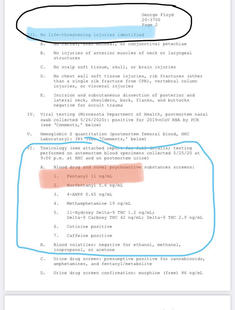 A memorandum filed by the Hennepin County Attorney’s office on June 1 indicated that chief medical examiner Dr. Andrew Baker, who listed Floyd’s death as a homicide, thought the amount of fentanyl in Floyd’s blood was “pretty high” and could be “a fatal level of fentanyl under normal circumstances.”
