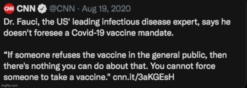 Yeah, because that’s what this society theoretically was founded on: individual liberty. You’re right: it is about me. I got the vaccination just so people wouldn’t bother me anymore and had zero excuses for trying to take my civil liberties away from me. I don’t really fear this virus outside of my mother getting it but now she’s fully vaccinated. I lost my uncle to Covid (pre-vaccination sadly), but I’m still able to separate him from the overall stats.