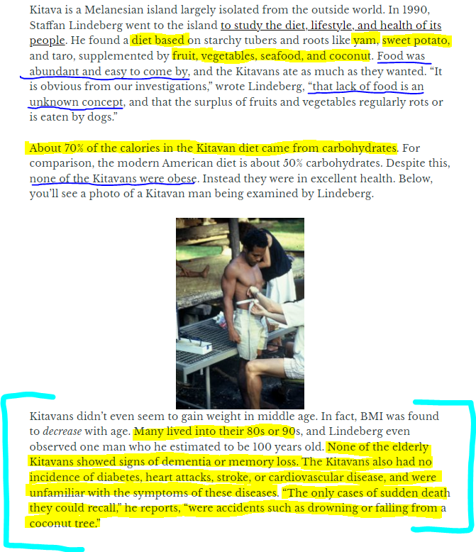 A common assumption is that humans evolved eating a highly varied diet of wild plants and animals, that our bodies still crave variety, and that we would be better off with a more varied diet. But when we look at modern hunter-gatherers, we see this isn’t true. The !Kung San of Tanzania get about 40% of their calories from a single food source, the mongongo nut, with another 40% coming from meat. But the !Kung are extremely lean (about 110lbs on average) and have excellent cardiovascular health.
