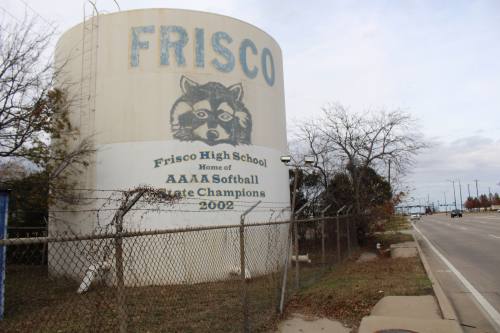 Then, people started moving to Frisco. The massage parlors and hot tub clubs had to move and the water tower needed to be re-painted. They put a clumsy new message about the 2002 Softball championship but everyone knows what’s under there.