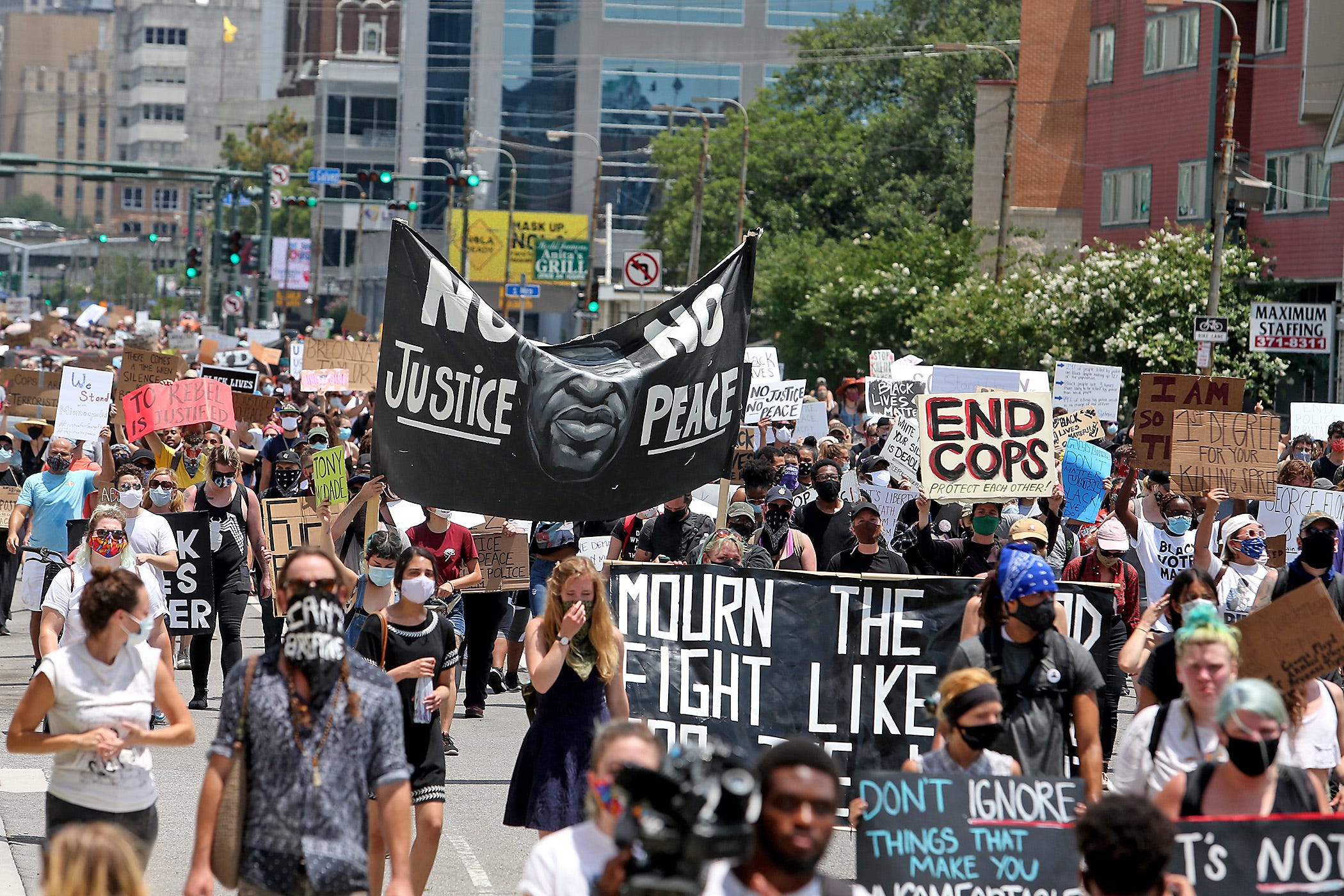 These are from a protest on May 30th. You can clearly see not everyone has a mask on and/or not wearing them properly. And they're crammed in.
