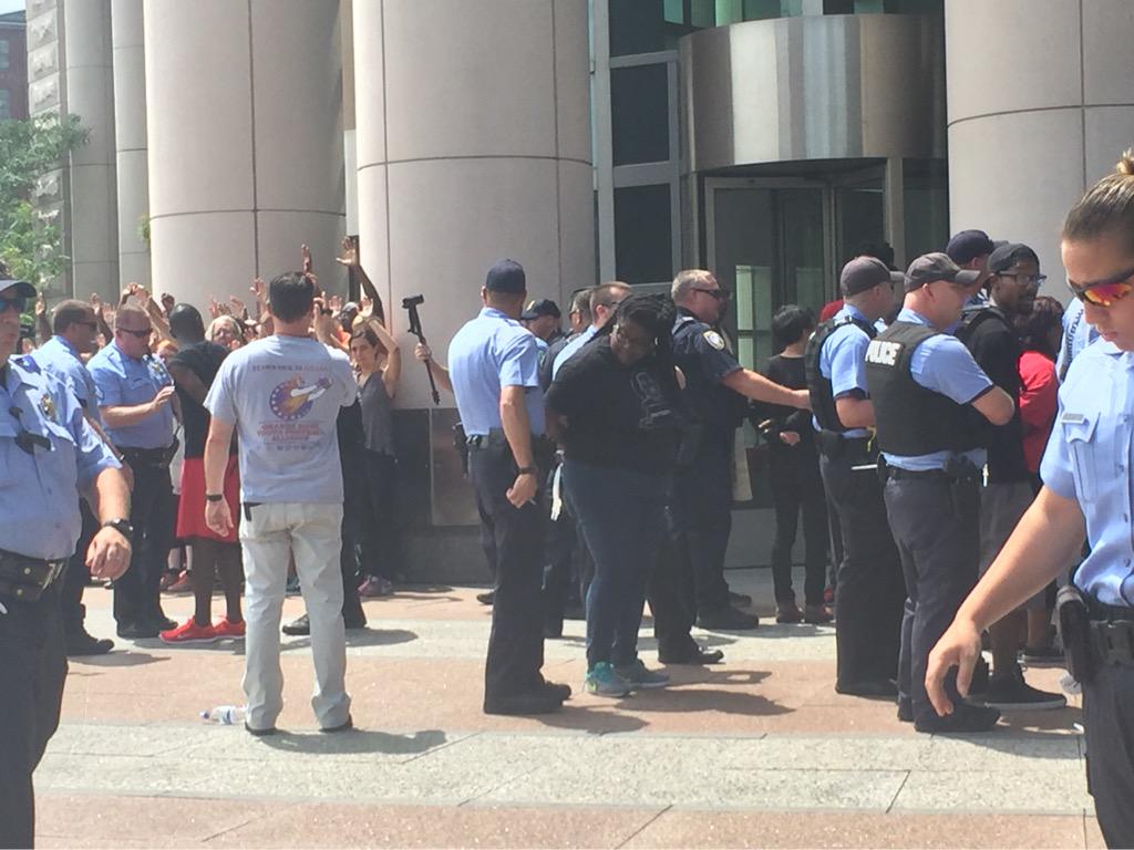 There is a clergy-led protest taking place now at the DOJ. @RevSekou and @CornelWest are there, likely will be arrested #fergusonforward