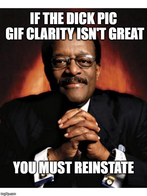 You just reinstated arse who porn bombed.