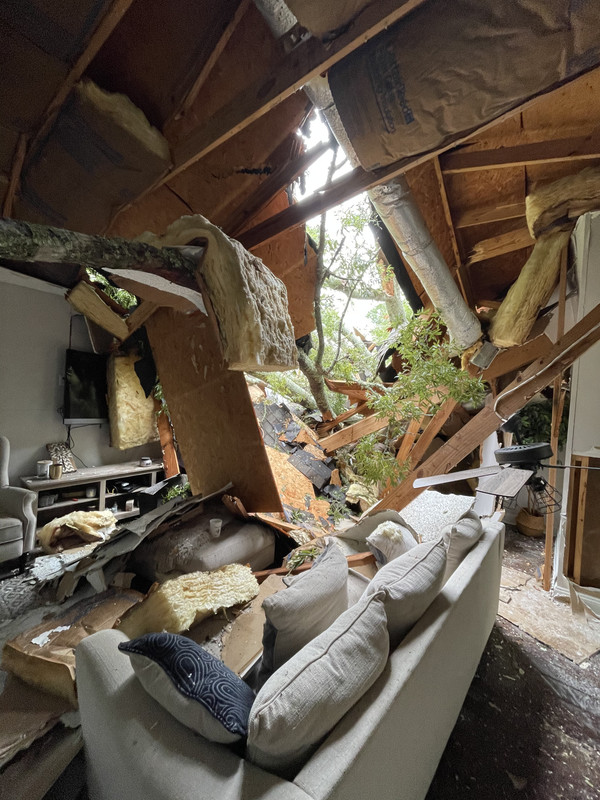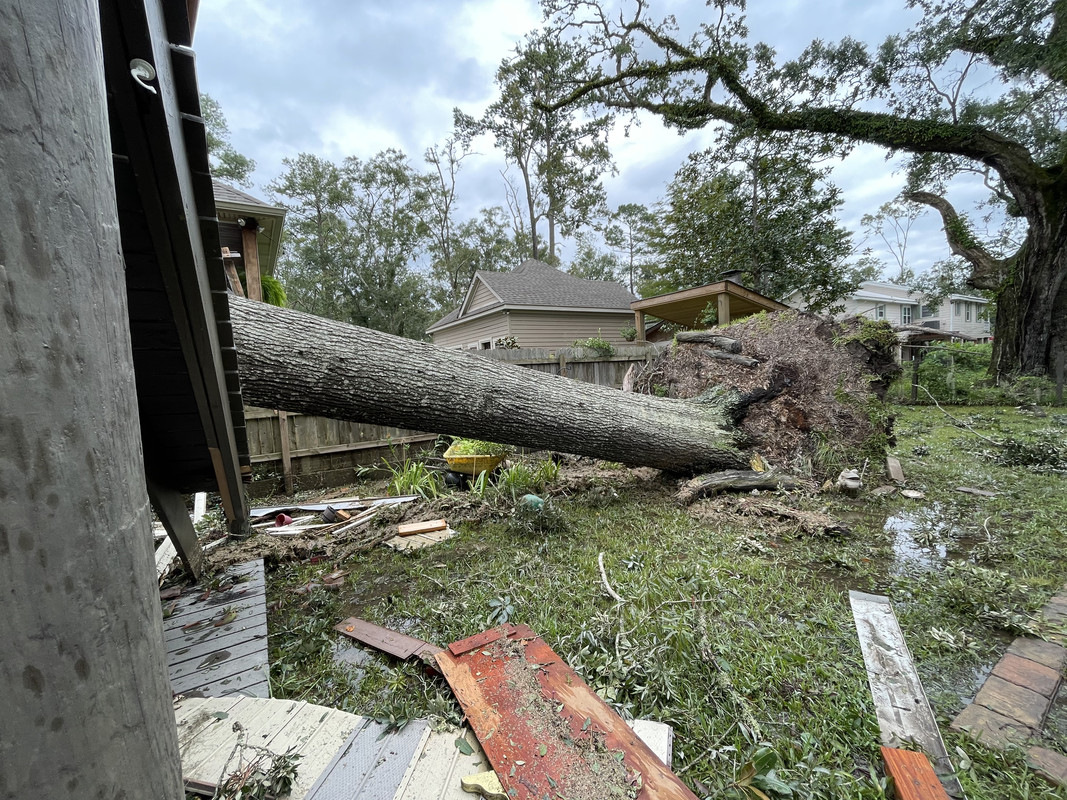 Here is an image of my house in old mandeville. Our home is completely destroyed and we will have to demolish it and don’t even know where to start but know the tree needs to go. I am with my wife and daughter who are both admitted into the same hospital and we are stuck here through Thursday. I have family that can be there if need be for them to plan to make it out there.