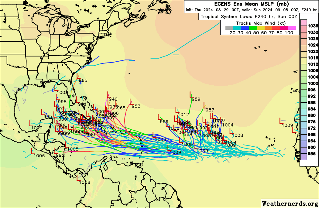 However, some ensemble members are now showing delayed development, with some of those later developing members sneaking into the Gulf.