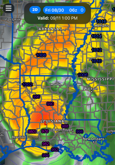 So on that run it looks like a Laura/Delta redux. Strong cat 3 at landfall and still a solid cat 2 in Ruston. Terrible.