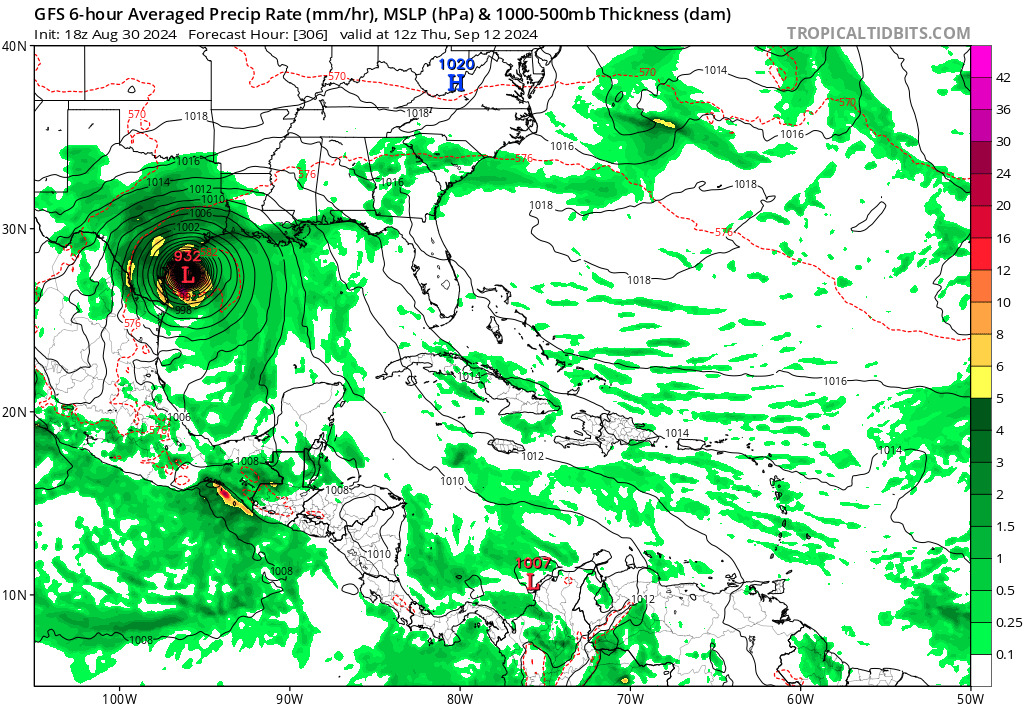 Can see the wide range of possibilities with teh GFS from 12Z to 18Z. 12Z Florida Panhandle and 18Z GFS middle texas coast as an absolute monster though. WOuld be a disaster but luckily 13 days away so will change bc the wind field is huge on this run
