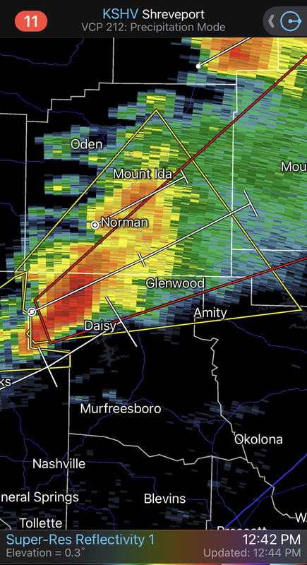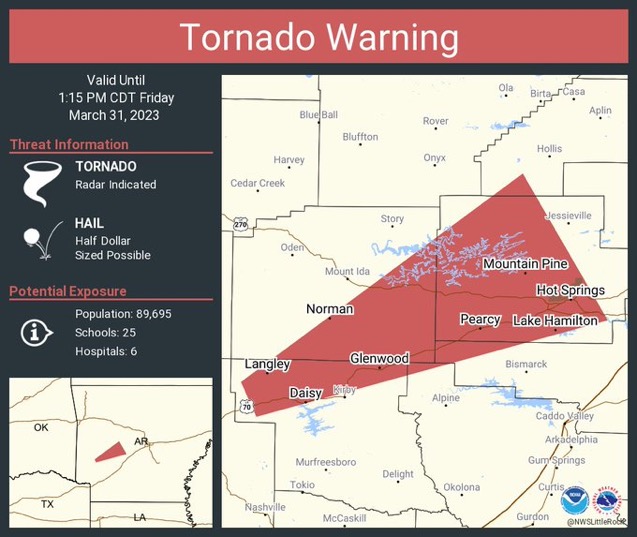 Heads up, tornado warning through 1:15pm for Clark, Montgomery, Garland, Perry, Pike and Hot
