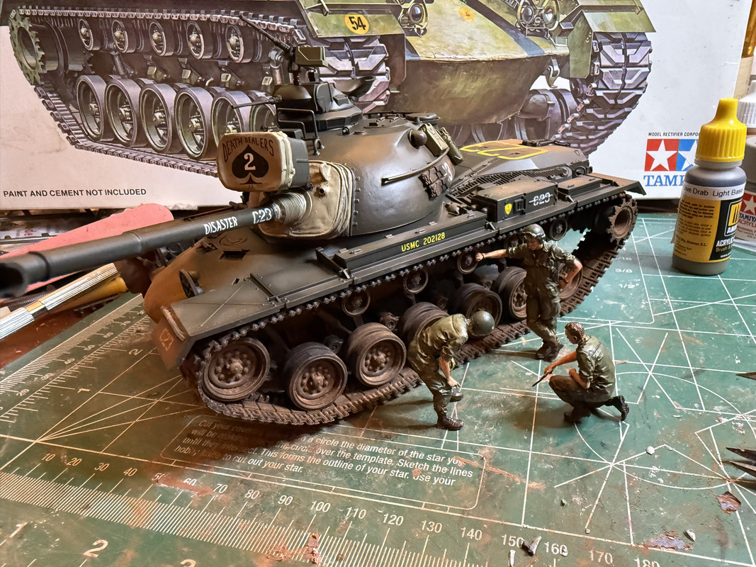 This is the old Tamiya 1/35 M48A3 Patton kit. I first built this kit some 30+ years ago as a kid and wanted to try it again using all I’ve learned. It’s pretty much out of the box with the exception a few resin items like the search light and mantlet, also a few ammo boxes, etc. Painted in Tamiya’s acrylics using my trusty old Iwata airbrush. Vietnam earth pigments for dust/mud. It will be part of a Vietnam diorama. Figures are resin, 1/35 scale.